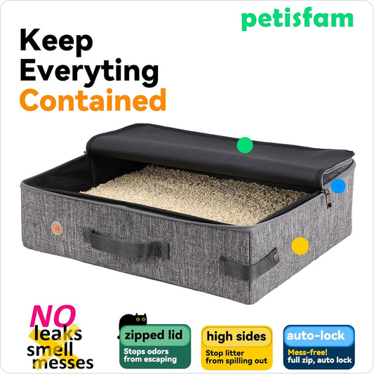 Portable Litter Box for Easy Travel with Cats and Kitties with 1 Collapsible Bowl and 1 Scoop